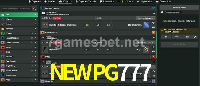 A aposta NEWPG777 oferece aos jogadores a experiência mais conveniente de apostas em eSports!